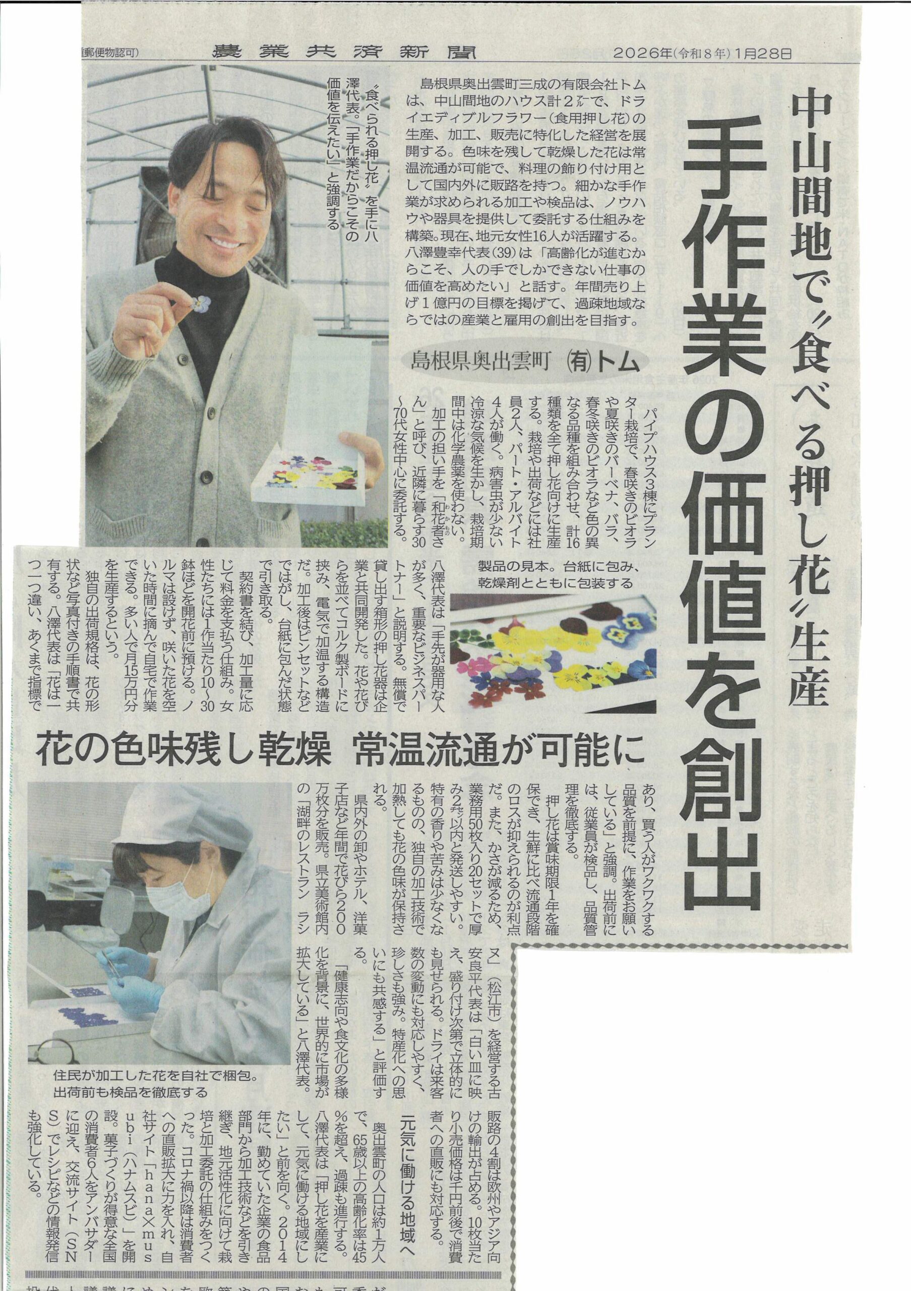農業共済新聞に掲載いただきました